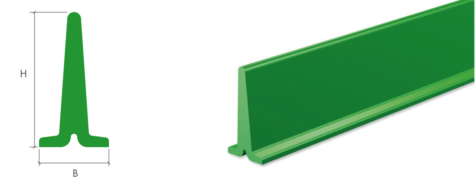 - Поперечные наклонные и прямые профили. Их задача — предотвратить смещение продукции при перемещении груза под углом. Обязательны для конвейеров со сложными наклонными трассами.