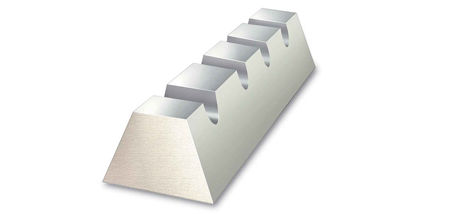 У профилей трапециевидное сечение. Есть изделия с гладкой поверхностью и зубчатые. Зубчатые используют, если нужно уменьшить диаметр вала.