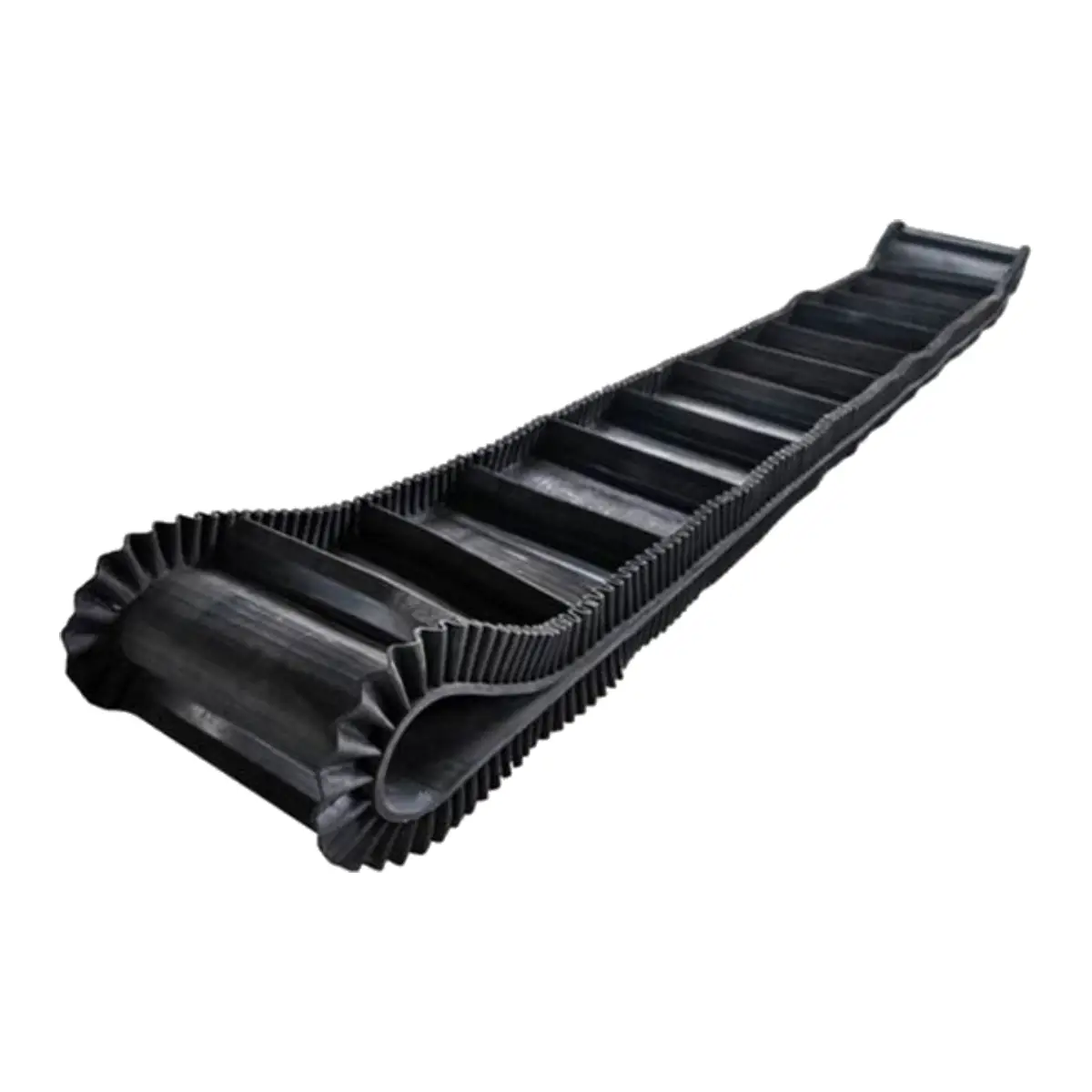 Полотна изготавливают из полиуретана, ПВХ или резины. Гофроборта устанавливают по краям. Благодаря гофрированной структуре они надежно удерживают сыпучие грузы. Гофроборта гибкие, они могут растягиваться, что позволяет использовать их на сложных трассах с поворотами. Перегородки (захваты) устанавливают поперек ленты.